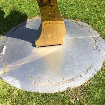 Freiplastik „Friedensbaum“ aus poliertem Metall. Dargestellt ist ein Olivenbaumzweig, der als Symbol des Friedens gilt. Geschaffen vom Künstler Hans-Georg Lang und eingeweiht vom Oberbürgermeister Dr. Joachim Rücker. Auf der Sockelplatte befindet sich eine Inschrift. Sehr gut erhalten, 3m hoch, 0,80m breit.