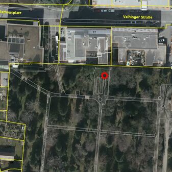 Grenzstein "Besoldungswiese", aus Sandstein mit dem Symbol der württembergischen Hirschstange. Rechteckige Grundform, gewölbter Kopf. Anbei eine erläuternde Texttafel. Der ursprüngliche Standort war die Würmbergstraße, der Stein wurde 2014 an diesen Standort versetzt. Gut erhalten, 46cm hoch, 20cm breit und 17cm tief.