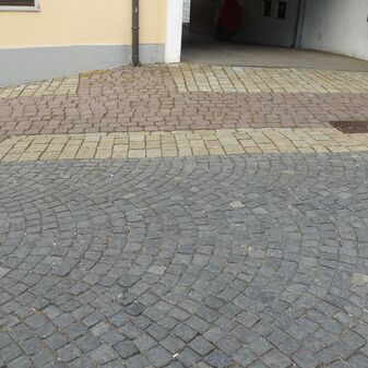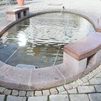 Trogbrunnen, bestehend aus einem Brunnenstock aus Metall und einem Brunnentrog aus gebrochenem Granit. Geschaffen 1978 von dem Künstler Ulrich Rückriem auf Initiative von Ingrid und Konrad Burgbacher im Zusammenhang mit der Neugestaltung der Altstadt. 87cm hoch, 230cm breit und 130cm tief. Sehr gut erhalten.
