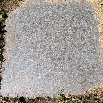 1968 / DENKMAL DER / BRUEDERLICHKEIT / EHEMALIGER KRIEGSGEFANGENER / MONUMENT DE LA FRATERNITE / DES ANCIEN / PRISONNIERS / DE GUERRE / VDH // CIAPG / FNCPG