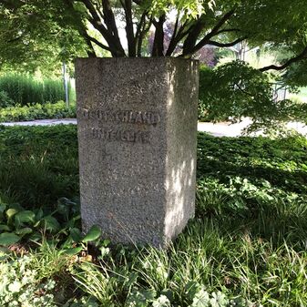 Mahnmal „Deutschland unteilbar“. Steinquader mit Inschrift, enstanden in den 1970er Jahren. Sehr gut erhalten, 150cm hoch, 75cm breit und tief.