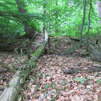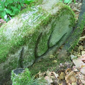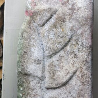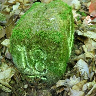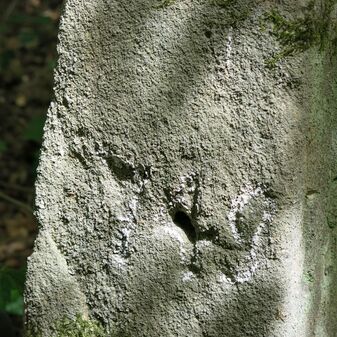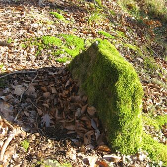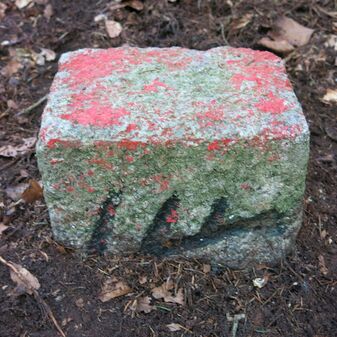 Stein „Steinerner Gaul“ aus römischer Zeit, 1882 gefunden, nur noch Sockel erhalten, der Rest abgebrochen. 40cm hoch, Sandstein, 73cm breit, 15cm tief.