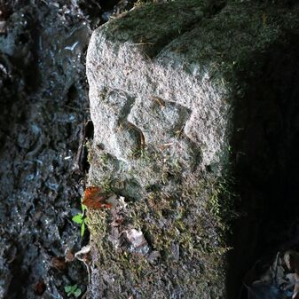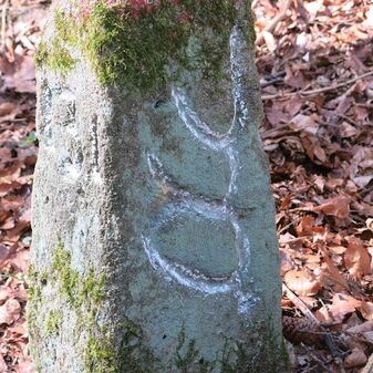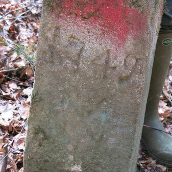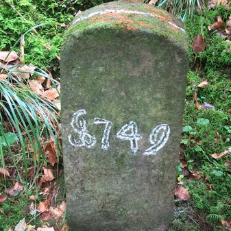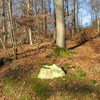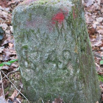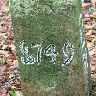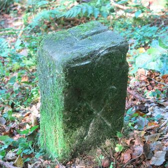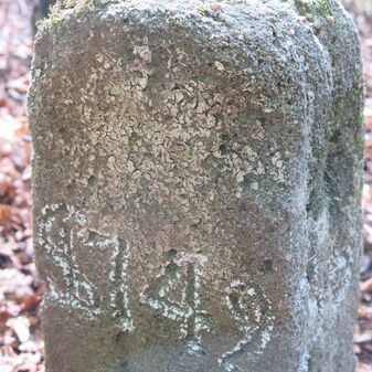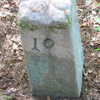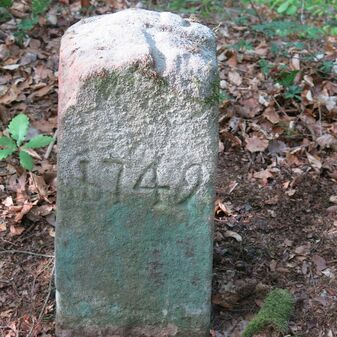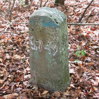 Reihung von 12 Grenzsteinen auf Gemarkung Steinenbronn, Staatswald; beginnend bei Koordinate R: 3508502 / H: 5392869 in östl. Richtung verlaufend. Sandstein, von 1749, rechteckige Grundform, flacher oder leicht gewölbter Kopf; unterschiedlich gut erhalten. Kennzeichnung auf dem Kopf mit gerader, oder geknickter Krinne und an den Seiten z.T. Symbol (Hirschgeweihstange), Buchstabe (D) und Nummerierung (21, $749, 19, 1749, 18 b, 18, 2, 15, 3, 1), z.T. nicht erkennbar.