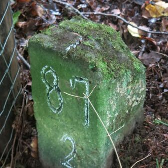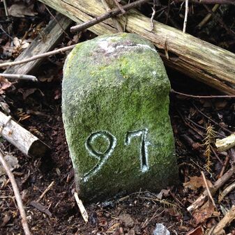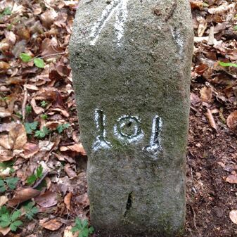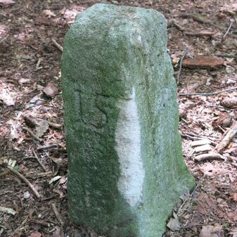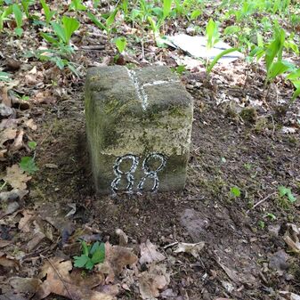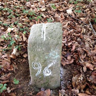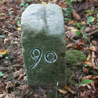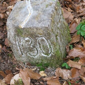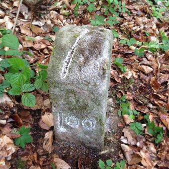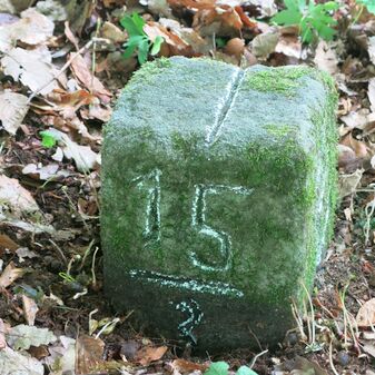 Reihung von 15 Gemarkungsgrenzsteinen auf aktuellem Grenzverlauf Steinenbronn / Waldenbuch (zugleich Gemeindegrenze Steinenbronn / Waldenbuch); beginnend bei Koordinate R: 3511519 / H: 5390315 in westl. Richtung dem Grenzverlauf folgend. Sandstein oder Granit, rechteckige Grundform, flacher oder leicht gewölbter Kopf; unterschiedlich gut erhalten. Kennzeichnung auf dem Kopf mit gerader, T-förmiger oder geknickter Krinne und an den Seiten z.T. Symbol (Hirschgeweihstange), Buchstabe (CW) und Nummerierung (88, 90, 91, 1749, 92, 94, 9, 96, 97, 98, 99, 100, 101), z.T. nicht erkennbar, von 1749, z.T. neu gesetzt.