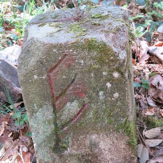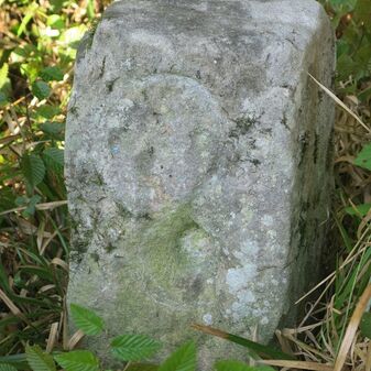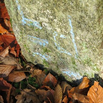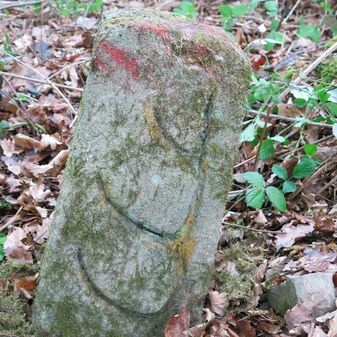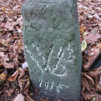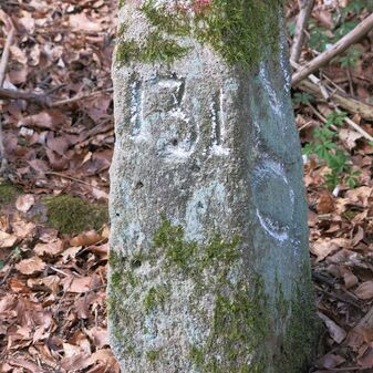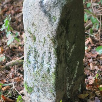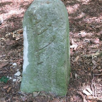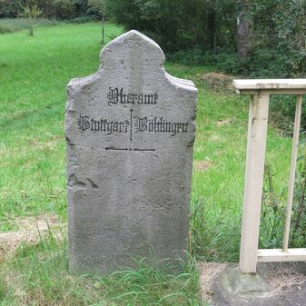 Grenzstein der ehemaligen Oberamtsgrenzen Stuttgart-Amt und Böblingen. Sandstein, rechteckige Grundform, spitzer Kopf, Inschrift an der Seite. Sehr gut erhalten, 132cm hoch, 60cm breit und 29cm tief.