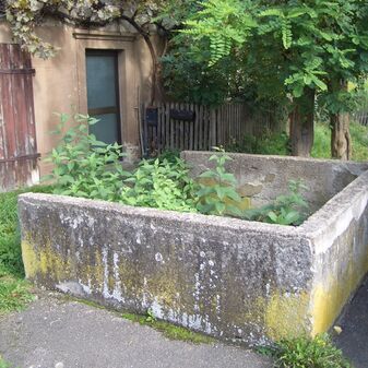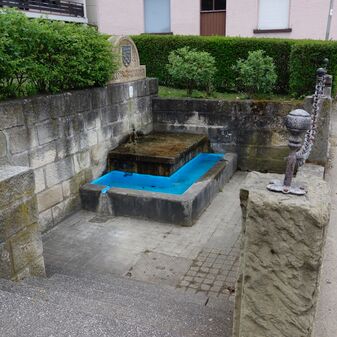 Pumpbrunnen „Lindenbrunnen“ aus dem 19. Jahrhundert; mit gusseisernem Brunnenstock mit Schwengel und rechteckigem Sandsteintrog. Gut erhalten, 2m hoch, 90cm breit und 85cm tief. Im Zuge der Umgestaltung des Dorfplatzes versetzt.