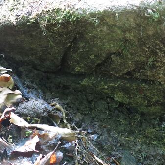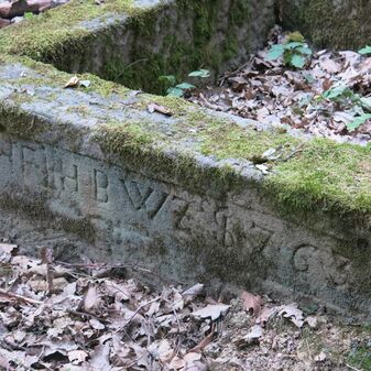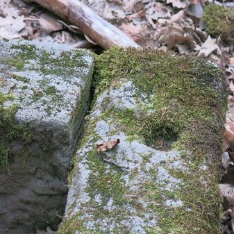 Salzlecke aus vier rechteckigen Sandsteinblöcken mit Inschrift von 1763, gut erhalten, 35cm hoch, 160cm breit und 150cm tief.