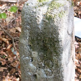 Grenzstein auf Gemarkung Steinenbronn; Sandstein, rechteckige Grundform, gewölbter Kopf; gut erhalten, 108cm hoch, 29cm breit und tief.