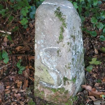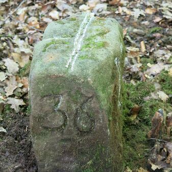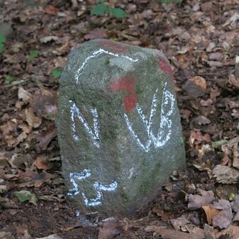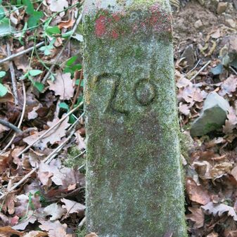 Reihung von 12 Gemarkungsgrenzsteinen auf aktuellem Grenzverlauf Steinenbronn / Waldenbuch (zugleich Gemeindegrenze Steinenbronn / Waldenbuch); beginnend bei Koordinate R: 3508977 / H: 5390689 in südwestl. Richtung dem Grenzverlauf folgend. Sandstein oder Granit, rechteckige Grundform, flacher oder gewölbter Kopf; unterschiedlich gut erhalten. Kennzeichnung auf dem Kopf mit gerader oder geknickter Krinne oder Punkt und an den Seiten z.T. Symbol (Wolfsangel für Steinenbronn, Hirschstange, Abtsstab), Nummerierung (N 55, 39, 1749, 47, 41, 1, 2, 42) und Buchstaben (Z, WB, N, St, CW), z.T. nicht erkennbar.
