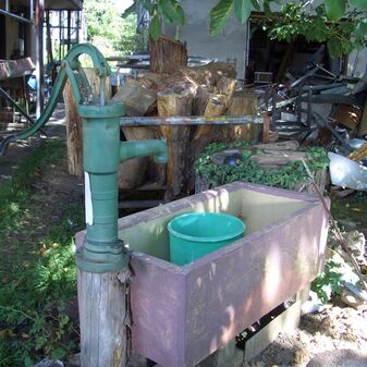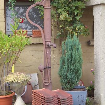 Pumpbrunnen mit gusseisernem Brunnenstock. Gut erhalten, 180cm hoch.