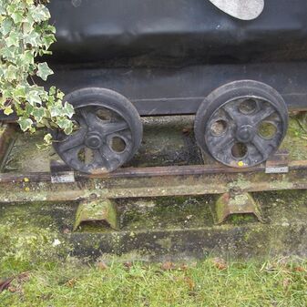 Grubenlore aus Eisen. Sie steht auf einem Gleisstück vor der Steinenbronner Grundschule. Die Lore stammt aus dem Kohlebergwerk der Partnergemeinde Le Roeulx, Belgien, und wurde der Gemeinde Steinenbronn 1993 geschenkt. Metalltafel mit Inschrift.Sehr gut erhalten, 112cm hoch, 132cm breit und 74cm tief.