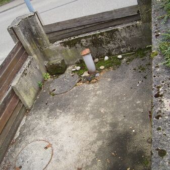 Dunglege, Miste, aus Beton, rechteckig, gut erhalten, 68cm hoch, 374cm breit und 443cm tief.