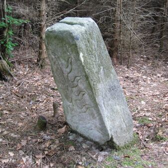 Der Gedenkstein erinnert an den Waldarbeiter August Todt, der hier 1904 verunglückte. Der rechteckige Stein aus Granit hat einen gewölbten Kopf und ist an der Seite mit einem Kreuz und einer Inschrift aus Metall versehen. 1968 wurde er neu gesetzt. Gut erhalten, 70cm hoch, 50cm breit, 20cm tief.
