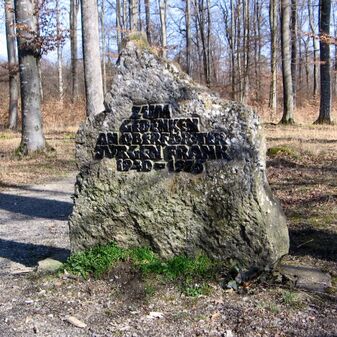 Dies ist ein Gedenkstein für politisch und rassistisch Verfolgte. Er wurde in der zweiten Hälfte des 20. Jahrhunderts errichtet. Die Steinplatte besitzt eine Inschrift, ist rechteckig und hat einen leicht spitzen Kopf. Sehr gut erhalten, 50cm hoch, 40cm breit und 10cm tief.