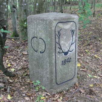 Der „Hirschstein“ von 1844 erinnert an den königlichen Revierförster Friedrich Wilhelm von Nachtrab, der zudem zwischen 1840 und 1845 Leiter des Forstamtes Weil im Schönbuch war. "VG" könnte für Oberförster Vogelmann stehen. Der rechteckige Sandstein mit flachem Kopf ist an den Seiten mit einem Hirschgeweih und einer Inschrift versehen. Er ist gut erhalten, wurde 2007 neu errichtet und ist 60cm hoch, 34cm breit sowie 21cm tief.