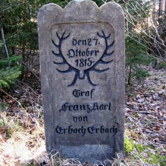 Der „Hirschstein“ von 1815 erinnert an den Freund und Jagdbegleiter des Königs Friedrich von Württemberg, Graf Franz Karl zu Erbach-Erbach. Der rechteckige Sandstein mit abgerundetem Kopf ist an den Seiten mit einem Hirschgeweih und einer Inschrift versehen. Er wurde 2004 neu errichtet, die Schrift wurde erneuert und er ist 108cm hoch, 51cm breit sowie 13cm tief.
