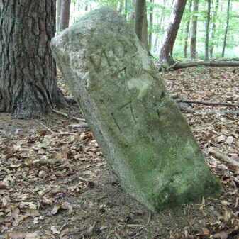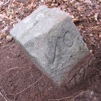 Grenzstein des Klosters Bebenhausen von 1795. Sandstein, rechteckige Grundform, flacher Kopf, an der Seite Nummerierungen NO 1795. Befriedigend erhalten.