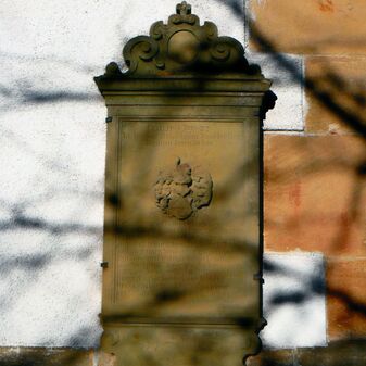 Die Gedenktafel von 1719 aus Stein mit Inschrift erinnert an den Zimmermann und Glaubensbruder Andreas Hess aus Tirol. Die Tafel ist in eine Mauer beim Pfarrhaus eingelassen. Mangelhaft erhalten, 1m hoch, 40cm breit.