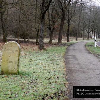 Dieser Gedenkstein von 1888 erinnert an Graf Ulrich von Württemberg, der in der Schlacht bei Döffingen 1388 starb. Angefertigt wurde der Gedenkstein aus quadratischem Sandstein von Bildhauer Christian Schlauch aus Münklingen. Der Stein ist sowohl mit einer Inschrift als auch mit dem Wappen Württembergs versehen und ist 175cm hoch und 74cm breit wie tief. Die Renovierungsarbeiten wurden im Jahr 2005 von der Firma Wanner aus Grafenau geleistet.