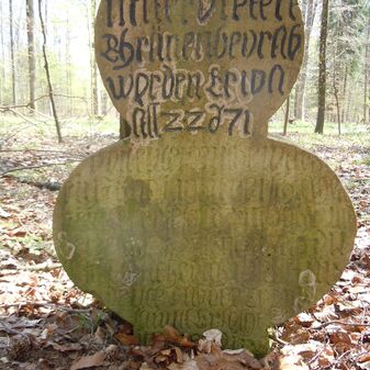 Hier / an dieser / Stätte starb plötzlich / Johann / Martin Heiz / mann ledig von Kup / pingen welcher von ei / ner gefälten Buche den / 15. Martij 1783 / Tod / geschlagen // und den 17tn / unter vielen / Thränen begrab. / worden. Er war / alt 22 J. 7 Wo / von einer Buche ward / ein Jüngling hier erschlagen. / Mein Leser diß soll dir ins Ohr und / Herze sagen du thuest was du / thust so siehe dich wohl für / denck daß der Tod nicht / säumt er folget / immer dir.