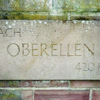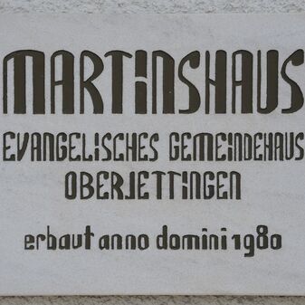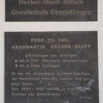 Am vorderen Denkmal: Namen der Verstorbenen und Orte // Ihren im Weltkrieg / 1914-1918 / gefallenen Söhnen. Die / dankbare Heimatgemeinde / Oberjettingen. // Sei getreu bis an den / Tod, so will ich dir die / Krone des Lebens geben. / Offenbarung 2, Vers 20 // Und wer den Tod / im heiligen Kampfe fand, / ruht auch in fremder / Erde im Vaterland. // Ich bin die Auferstehung / und das Leben. Wer / an mich glaubt, der wird / leben, ob er gleich stürbe. / Johannes 11, Vers 25. Am hinteren Denkmal: DEN TOTEN DES ZWEITEN WELTKRIEGES 1939-1945 IN TREUEM GEDENKEN / GEWIDMET VON DER / GEMEINDE OBERJETTINGEN
