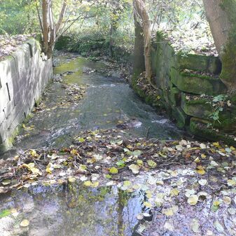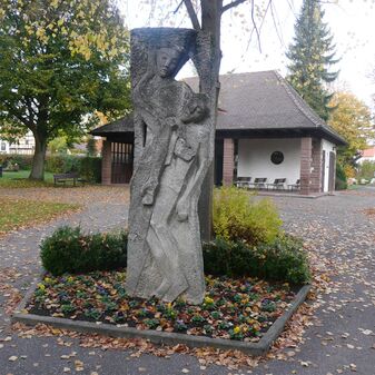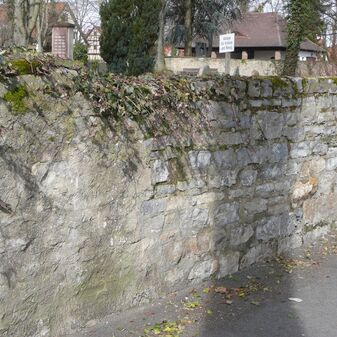 Gefallenendenkmal aus Sandstein für die Gefallenen und Vermissten des Ersten Weltkriegs; bestehend aus zwei Pfeilern, an denen Täfelchen mit Namen und Daten angebracht sind; auf den Pfeilern befindet sich jeweils ein Kreuz. 3m hoch, je 1m breit, 50cm tief. Befriedigend erhalten.
