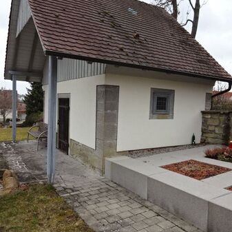 Backhaus, errichtet 1840. Bei der Sanierung 1990 wurden eine Heizung und neue Steinbacköfen eingebaut. Es weist einen rechteckigen Grundriss auf, das Erdgeschoss ist mit Sandsteinquadern gemauert, mehrere Fenster besitzen Klappläden aus Holz und das Dachgeschoss ist mit Fensteröffnungen ausgestattet. Das Satteldach weist einen Schornstein auf. Vor dem Backhaus befinden sich ein Radabweiser und eine Bank. Gut erhalten, noch funktionsfähig.