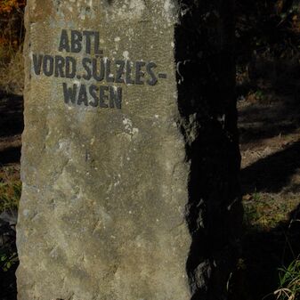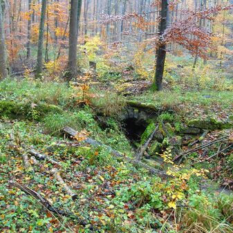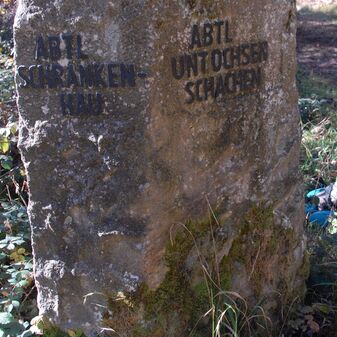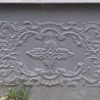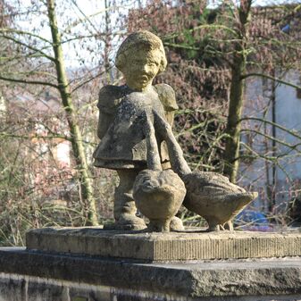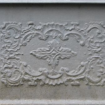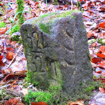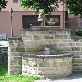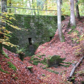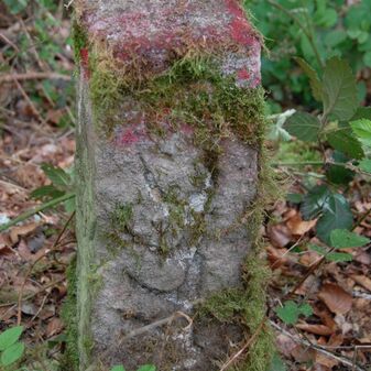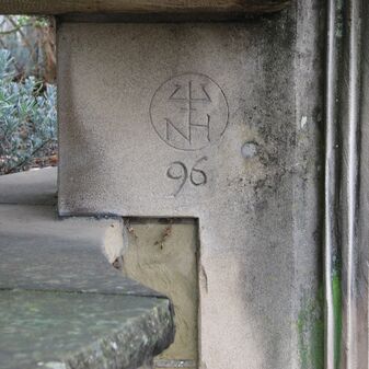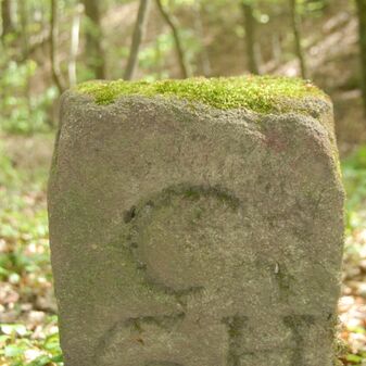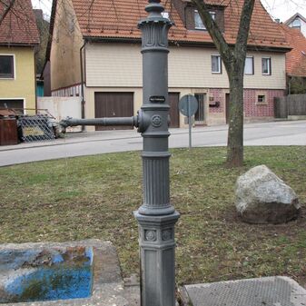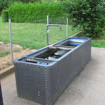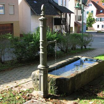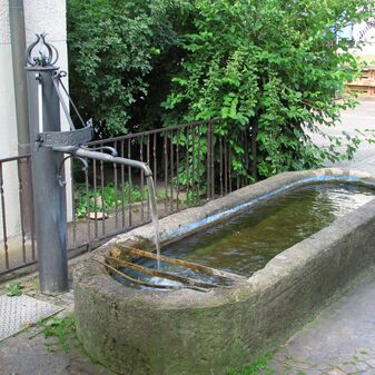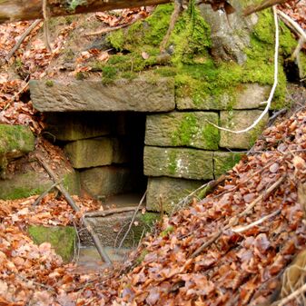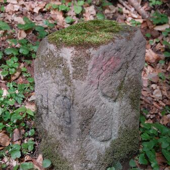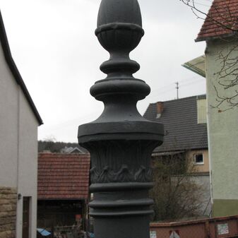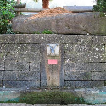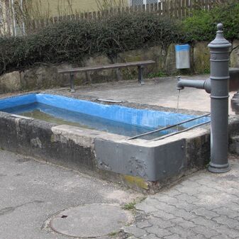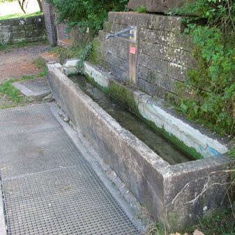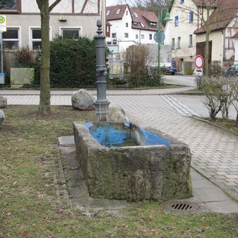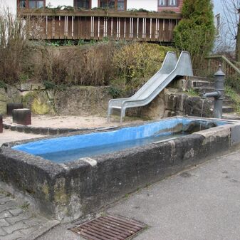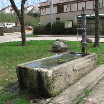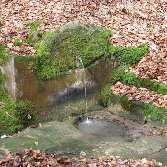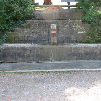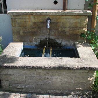 Brunnenstube für „Immenbach- oder Gaiernbrunnen“. Nur noch dreieckiges Oberteil sichtbar, der Schacht ist mit Blech abgedeckt. An der Stirnseite befindet sich ein kreisrundes Relief mit 0,26m Durchmesser. Sandstein, befriedigend erhalten. 0,50m hoch, 1,10m breit, 0,53m tief.