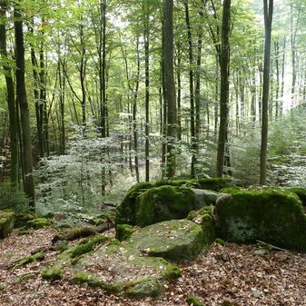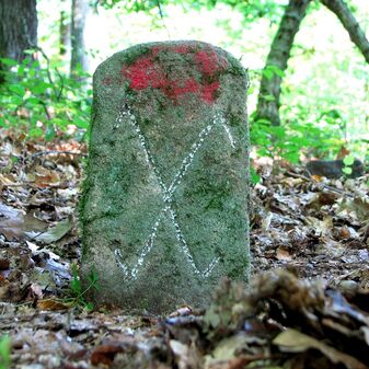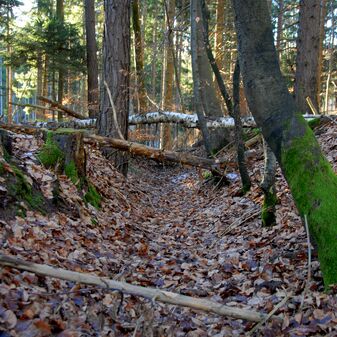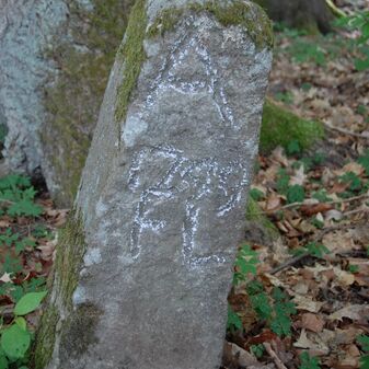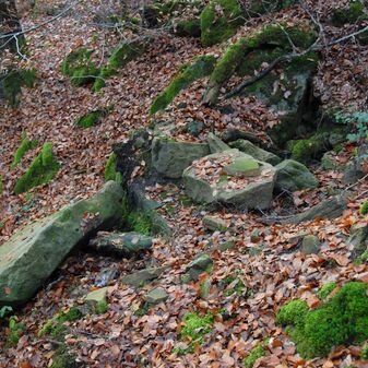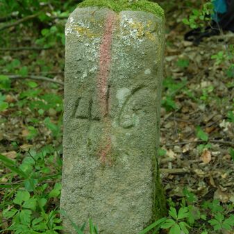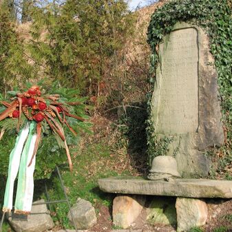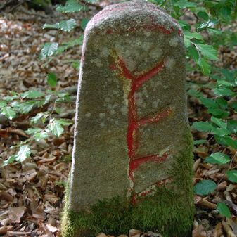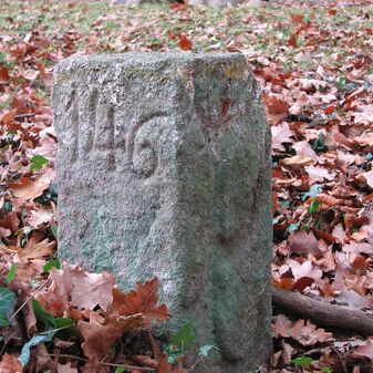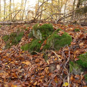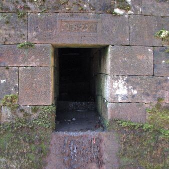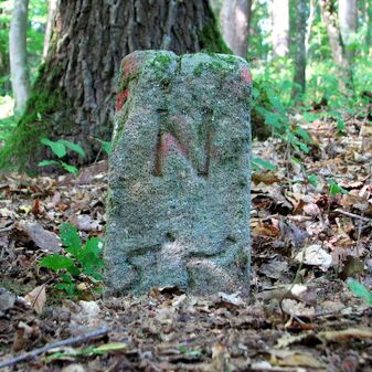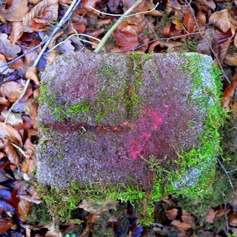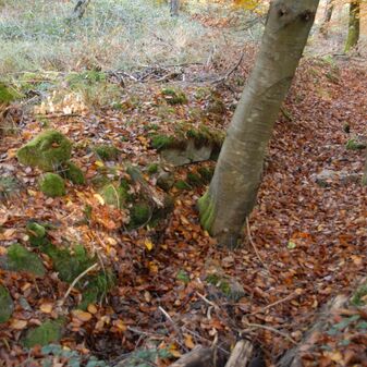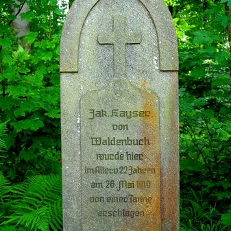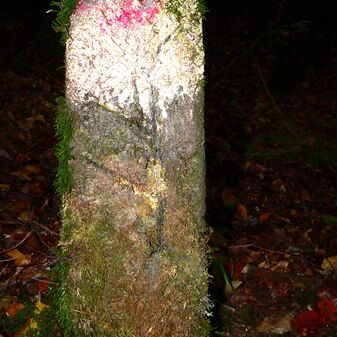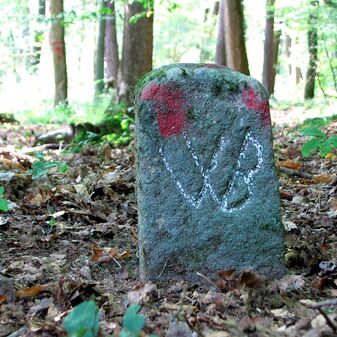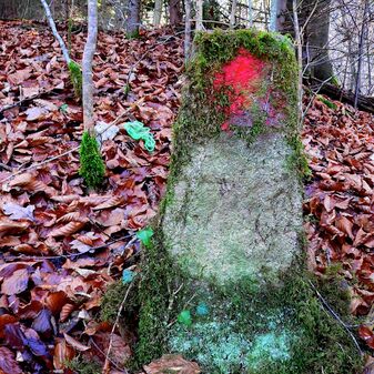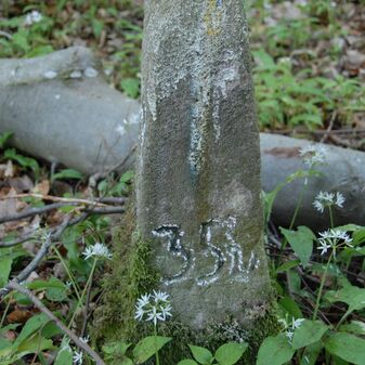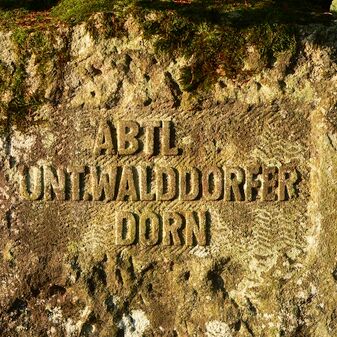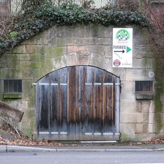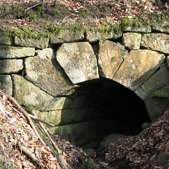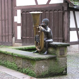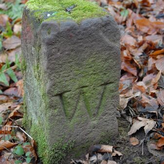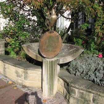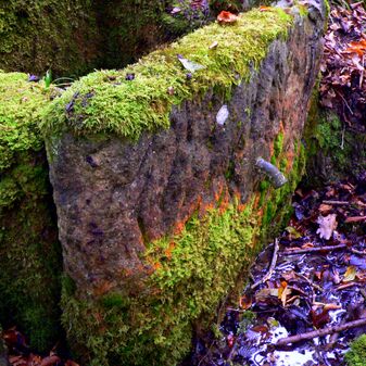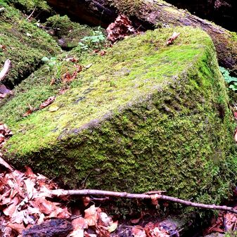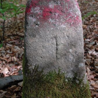Brunnenstube für „Immenbach- oder Gaiernbrunnen“. Nur noch dreieckiges Oberteil sichtbar, der Schacht ist mit Blech abgedeckt. An der Stirnseite befindet sich ein kreisrundes Relief mit 0,26m Durchmesser. Sandstein, befriedigend erhalten. 0,50m hoch, 1,10m breit, 0,53m tief.